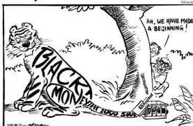 The cartoon below shows the ground reality on black money menace by the Cartoon King Late R K Laxman!